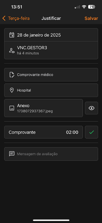 Caso a Justificativa seja aprovada, o colaborador será notificado e a ocorrência será alterada. Para confirmar, clique em Salvar.