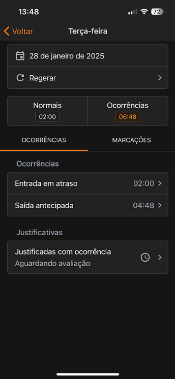 As Justificativas no espelho do colaborador são solicitações de alterações de ocorrências que ocorreram durante o período de trabalho, como atrasos, saídas antecipadas, faltas, entre outros. A solicitação é realizada pelo colaborador e, após a análise do gestor, a ocorrência poderá ser alterada.