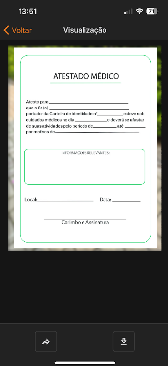 Para avaliar um anexo, clique no ícone de Visualizar à direita do anexo. Será possível baixá-lo ou encaminhá-lo, se necessário.